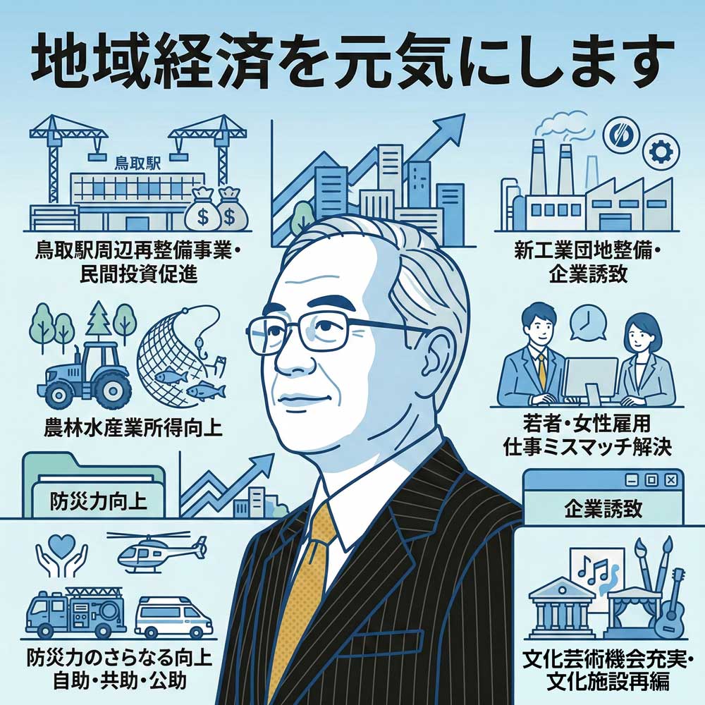 - 「鳥取駅周辺再整備事業」をきっかけに民間投資を促進し、地域経済の活性化を図ります